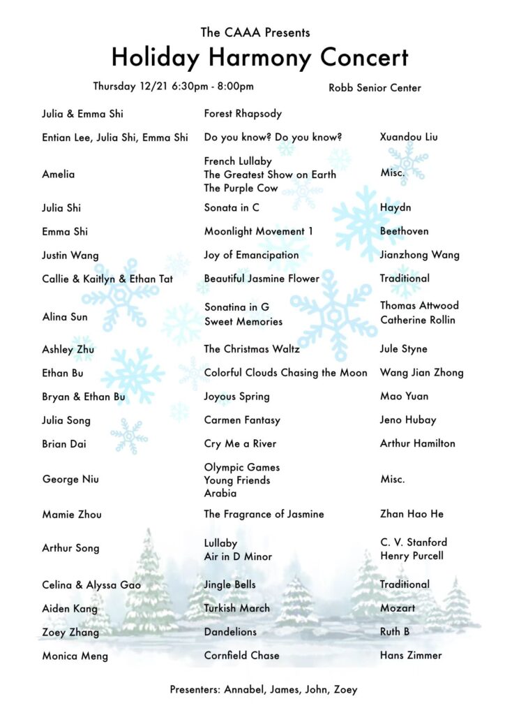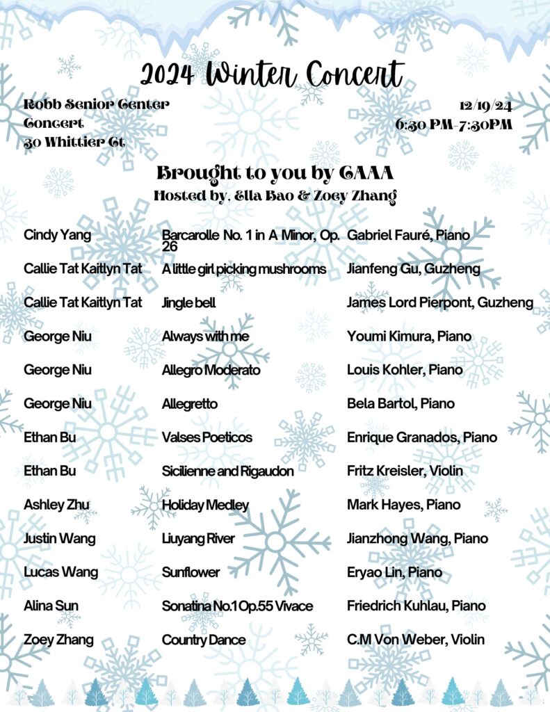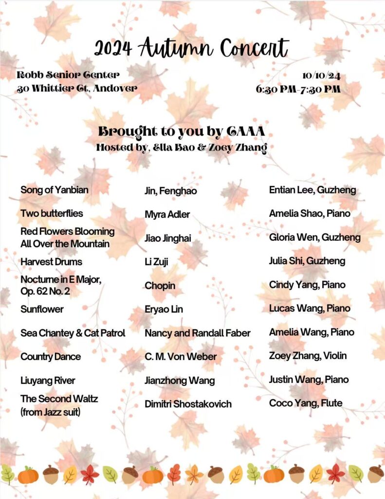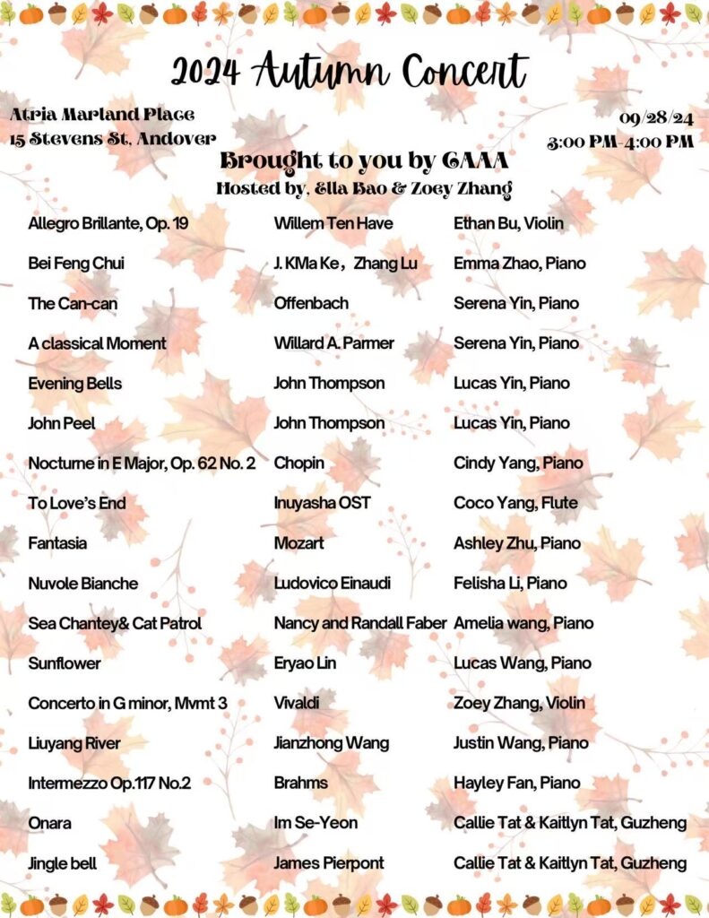 I coordinate and present concerts for two senior centers in Andover—the Atria Marland Place and the Robb Senior Center—and in the process, I have learned the importance of responsibility, communication, and empathy as I engage with senior residents. These concerts have also provided them with an opportunity to share in music.